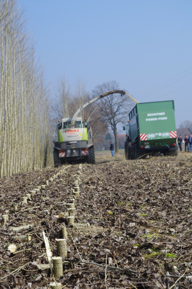 Bei langen Umtriebszeiten von 5 bis 8 Jahren erreichen Pappel bis zu 25cm Durchmesser. Hier ist eine Ernte mit einem Feldhäcksler nicht mehr möglich.