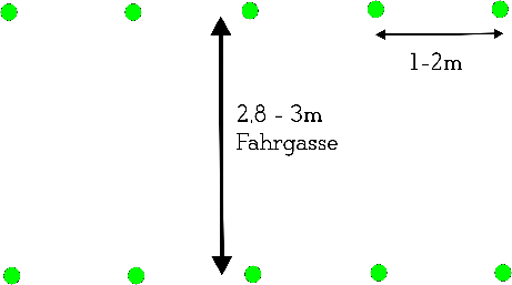 Die Fahrgasse sollte nicht zu eng bemessen sein da die Äste später in die Fahrgasse reichen.